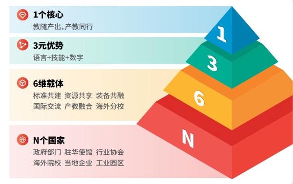 外研在线依托北京外国语大学优质的语言教学资源和国际化基因,作为外语教学与研究出版社数字化升级转型的核心载体,是中国外语数字教育的推动者与引领者。针对教育国际合作,外研在线规划设计“1+3+6+N”教育国际化整体解决方案,即紧紧围绕“教随产出,产教同行”一个核心,发挥“语言+技能+数字”三元优势,以教育标准共建、教育资源共享、教育装备共融、国际交流互访、国际产教融合、海外分校建设为六维载体,聚集N个国家的官方合作资源,共生共创共赢。