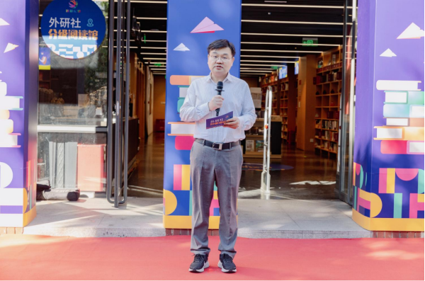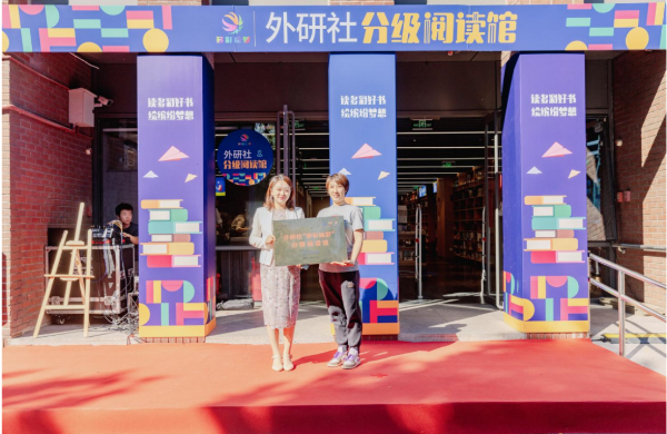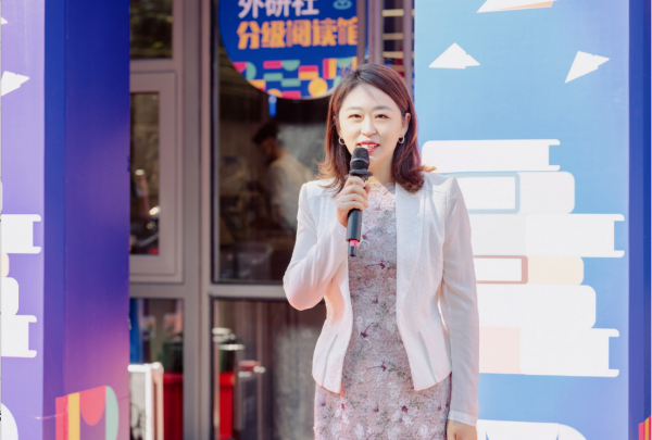 外研社党委副书记陈媛媛为外研社分级阅读馆一号馆正式授牌并致辞。她指出,如何在孩子语言启蒙和思维发展的关键期对孩子做好英语启蒙,培养良好的阅读习惯是很多家长共同关注的问题。外研社从2011年开始,便启动了中小学英语分级阅读标准和体系的建设。在标准的牵引下,外研社先后出版了60多个套系分级阅读产品、6000多册英语分级读物,并从中精心挑选出上千册绘本,按照主题横向打通,逐级提升,打造了外研社分级阅读馆。外研社分级阅读体系就像一座阶梯,孩子只需要沿着阶梯一步步向上走,就能持续成长,最终蜕变为一个成功的独立阅读者。全国29个省区市几百余家分级阅读馆近日陆续完成挂牌,外研书店作为外研社分级阅读馆一号馆,也作为全国分级阅读馆的代表,在今天正式授牌,与全国各地分级阅读馆共启新篇,用精美的分级读物、线上伴读和丰富多彩的绘本讲读沙龙等活动为孩子们提供多样化的阅读服务。