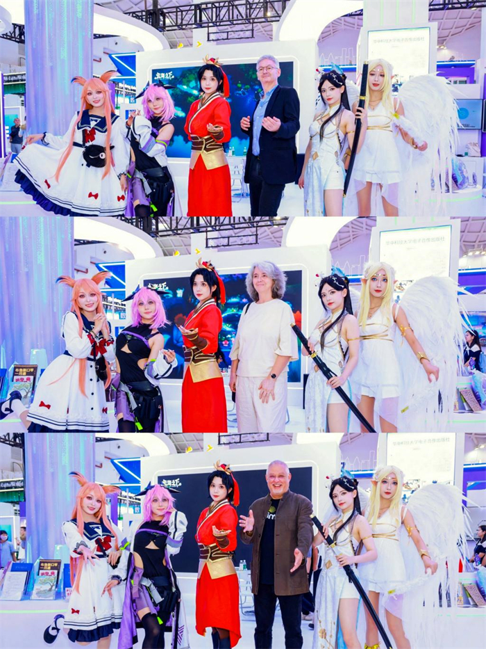 华中科技大学出版社作为动漫游戏展区的重点推介对象,此次展示了与腾讯游戏、盛天网络、艺画开天等知名头部游戏厂商最新合作出版的热门网络游戏和经典单机游戏,诸如《黑色沙漠》《暗区突围》《真・三国无双》《星之翼》《剑灵》《凡应》等精品之作,赢得了各级领导、兄弟单位的一致赞誉。众多嘉宾和海内外观众纷纷在华中科技大学出版社展区合影留念,其中包括法国国家出版商协会数字委员会主席维吉妮・克莱森、施普林格・自然大中华区总裁安杰诺・雅各布斯和《法国书业周刊》《图书周刊》总编辑法布里斯·皮奥。