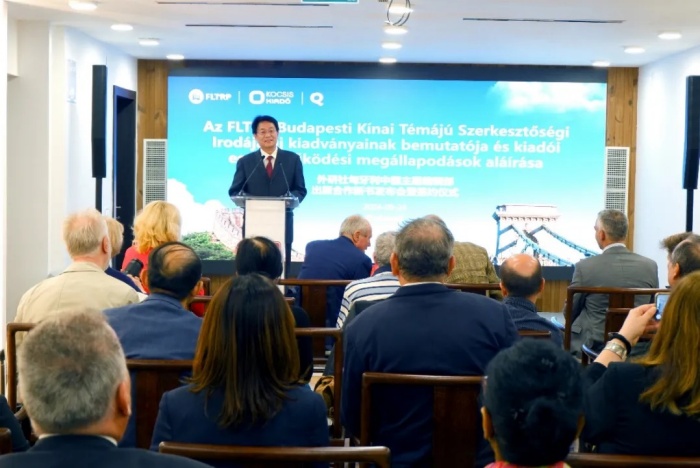 刘捷总编辑在致辞中回顾了外研社与匈牙利合作的发展历程。从2018年在布达佩斯设立中国主题编辑部至今,凭借本土化运营优势,外研社已与多家匈牙利出版机构建立紧密合作关系,成功推动20余种中国图书在匈牙利翻译出版。刘捷表示,今日的新书首发与签约仪式,标志着中匈出版合作持续稳健,并将进一步拓展领域、扩大规模,这既是双方共同努力的成果,也是中匈文化交流的又一重要里程碑。
