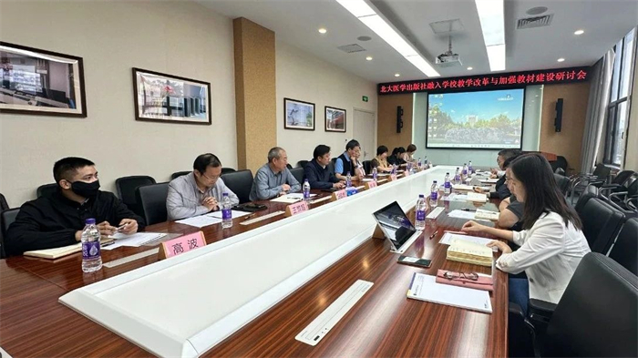 北京大学医学出版社首先介绍了北医社教育教材建设成果,围绕传播北医教学改革成果、探索更多类别的教育出版产品和加强教学研究成果传播与转化三个方面提出了建议。讨论环节就“十四五”普通高等教育本科国家级规划教材申报情况提出了北大医学教材建设的优势和问题,与会者热烈沟通如何加强北大医学教材建设研究、出版社深度参与教改教材的开发、基于新技术的新形态教材的开发,以及鼓励北大医学教育教学著作出版的思路与举措。