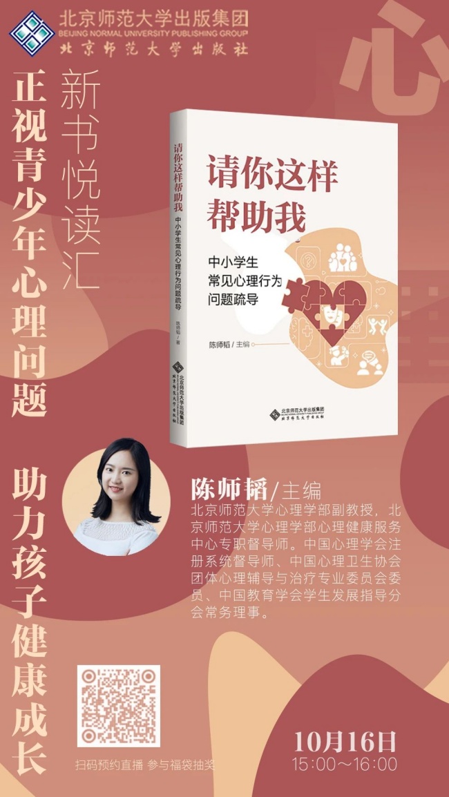 10月16日,我们将邀请本书作者北京师范大学心理学部副教授陈师韬做客直播间,与我们一起探讨青少年的心理行为问题,助力孩子健康成长。