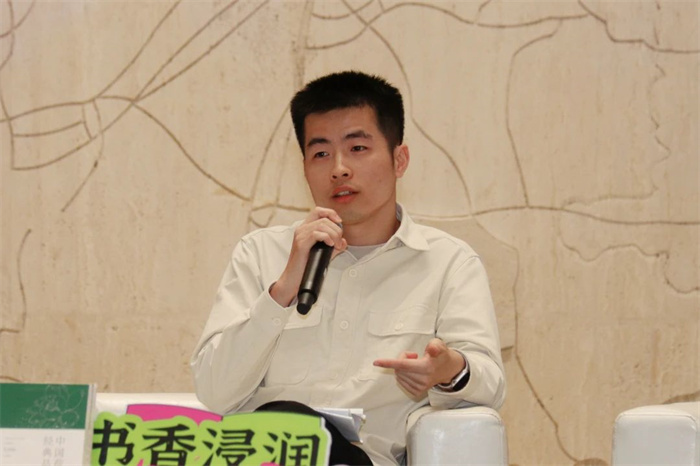 张春以《中国文化植物经典品读》丛书的具体分册内容和出版意义开场,带现场观众整体了解由程杰教授主编的《中国文化植物经典品读》丛书。本套书精选牡丹、梅、松柏、竹、兰、荷、菊、杨柳、桃、杏等10种重要的文化植物加以图文并茂的介绍,生动地展现了我国博大精深的植物文化。