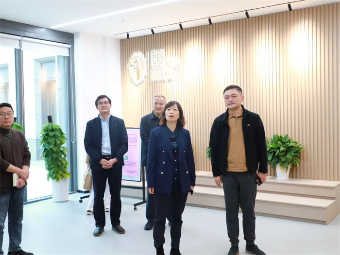 10月24日,南京市鼓楼区政府副区长伏进进一行调研南京师范大学出版社新园区。南京师范大学出版社党委书记、董事长、社长张鹏,副总编陈祝峰,副社长杨爱东陪同。