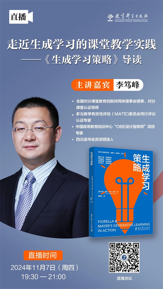 为了让老师们深入了解生成学习理论并对书里提到的善作小结策略等八种生成策略有更深入的感知,以及了解每种策略在进行本土化实践时的具体操作路径及注意事项,我们特别邀请资深教育培训专家李笃峰老师带来专题分享。