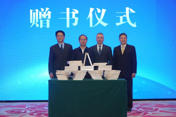 为祝贺中亚(丝路)职业教育与产业发展研究院成立、促进研究院学术研究发展,外语教学与研究出版社特将北京外国语大学党委书记王定华教授总主编的国家社会科学基金(教育学)重大项目研究成果“一带一路”国家文化教育大系(已经出版的42卷)赠送给新疆师范高等专科学校(新疆教育学院)图书馆。刘捷表示,将这套大系赠予新疆师范高等专科学校(新疆教育学院),既是外研社对职业教育与文化交流事业的长期关注与支持的具体体现,也表达了外研社和新疆师范高等专科学校(新疆教育学院)携手并进、在“一带一路”倡议下促进职业教育交流与发展的愿景。