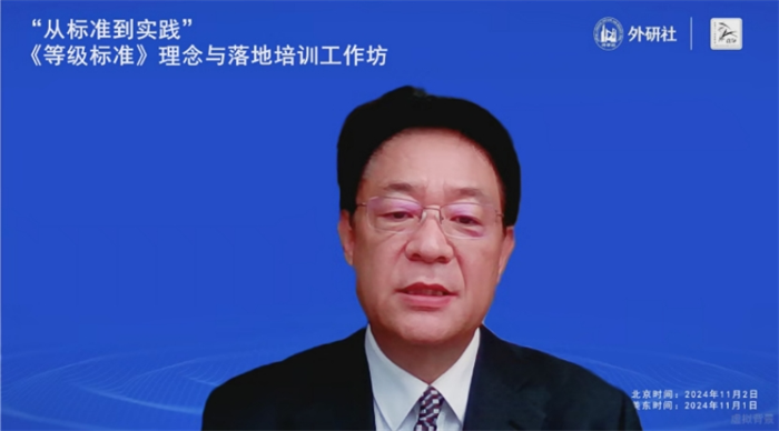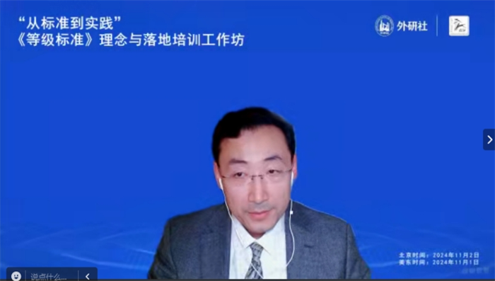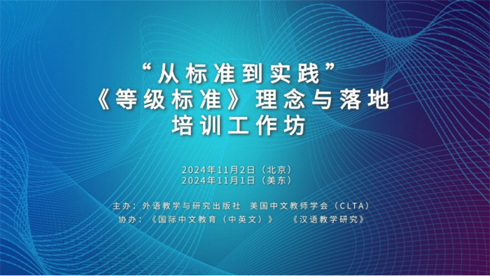 北京时间2024年11月2日,为促进国际中文教师对《国际中文教育中文水平等级标准》(以下简称《等级标准》)的深入理解与应用,外语教学与研究出版社联合美国中文教师学会(CLTA)在线上举办了主题为“从标准到实践”《等级标准》理念与落地培训工作坊。美国中文教师学会会长史中琦,外研社总编辑、《国际中文教育(中英文)》期刊主编刘捷在开幕式致辞,活动共吸引超过1100名全球中文教育工作者的广泛参与。