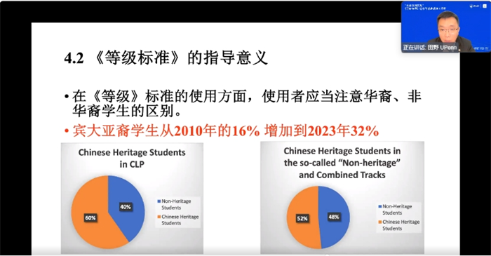 在主题讲座环节,6位专家从多个角度分享了《国际中文教育中文水平等级标准》的应用策略,涵盖语用能力、教学设计、中美教材对接等方面,为国际中文教师提供了宝贵的教学指导。