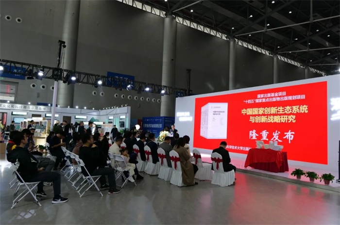 发布会现场气氛热烈,嘉宾们共同为新书揭幕。丛书主编汤书昆教授向观众畅谈丛书的创作初心,详细阐述了丛书的选题背景、创作历程及学术价值。他特别提到,在当前国际形势下,我国已由过去注重技术创新、集成创新跃迁到更加注重包括新一代创新体系在内的国家创新生态系统的建立。本套丛书正是在这样的背景下应运而生的,以中国走在国际前沿或关系国家重大战略转型的代表性科学、文化与产业领域为对象,运用第五代创新理论,系统研究和阐释了中国崛起背景下的国家创新生态系统构建的现状内涵与深层逻辑,总结和提出了创新生态系统构建的实践路径与方案建议。