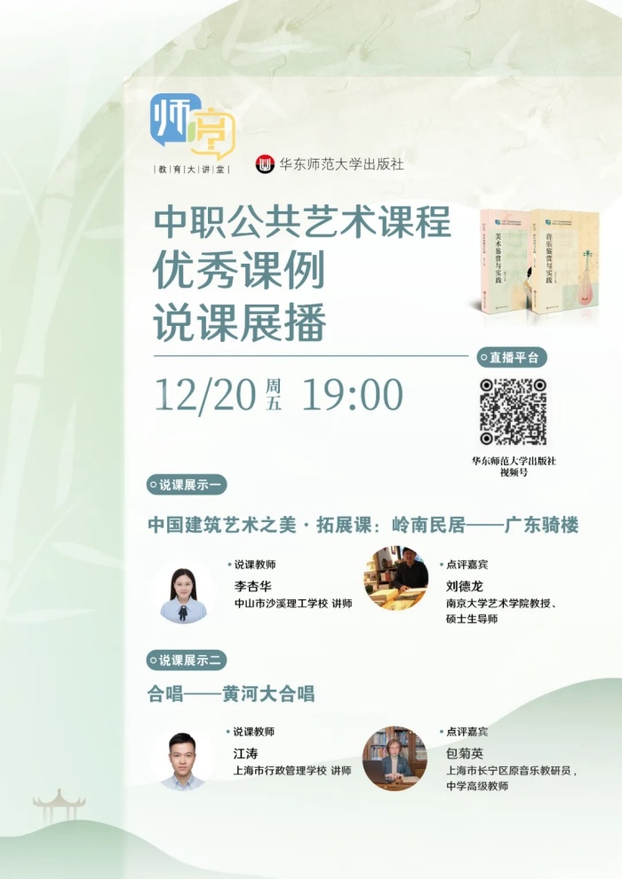 为贯彻落实《中等职业学校艺术课程标准(2020年版)》,深入理解中职艺术课标理念和课程核心素养内涵,加强中职艺术教师间的研究交流,促进教师专业成长,提高艺术课程教学水平,华东师范大学出版社举办了中职公共艺术课程优秀课例征集活动,经过专家评审,最终评审出10个获奖课例作品。