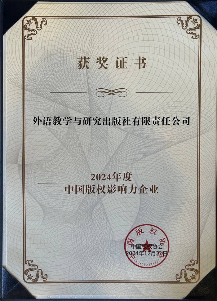 外研社获得“2024年度中国版权影响力企业”荣誉称号