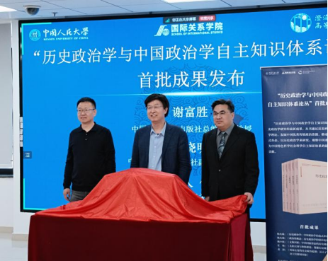 会上还举行了“历史政治学与中国政治学自主知识体系论丛”首批成果发布会。发布会由中国人民大学国际关系学院任锋教授主持,中国人民大学国际关系学院院长、澄海全球发展与安全高等研究院院长杨光斌教授与中国人民大学出版社总编辑谢富胜教授、副总经理郭晓明编审共同为首批成果揭幕。