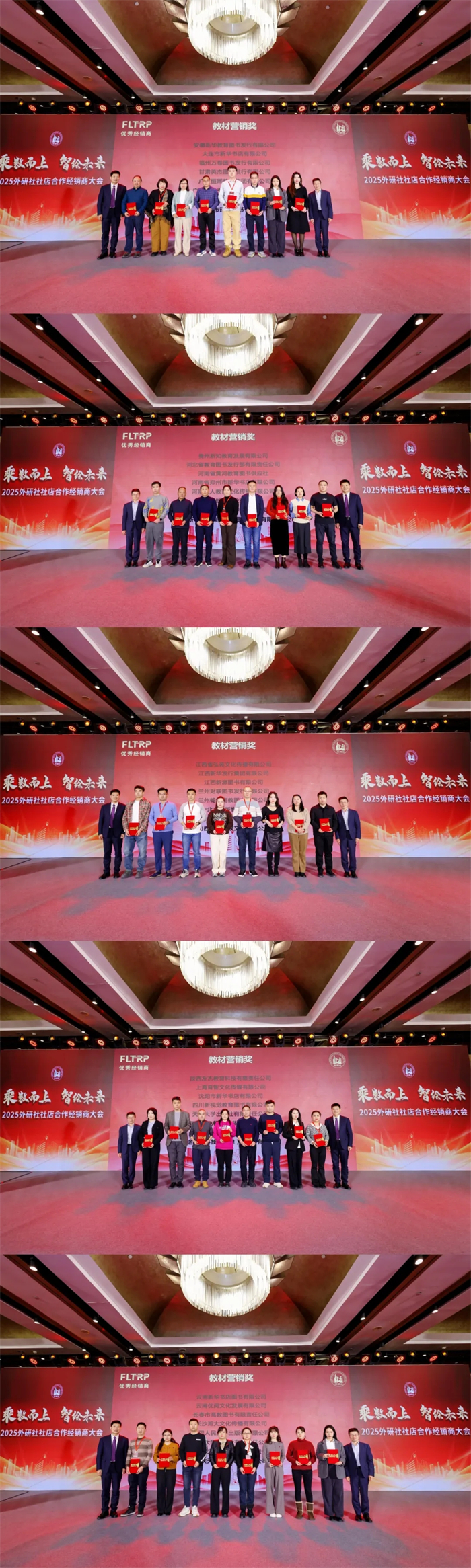 2024年,外研社与渠道合作伙伴紧密配合,挖掘潜力,再创佳绩。大会对业绩突出的优秀合作伙伴进行表彰,颁发最佳合作伙伴奖、教材营销奖、新锐开拓奖、线下营销奖、新媒体营销奖、线上营销奖、金牌采购奖等奖项。