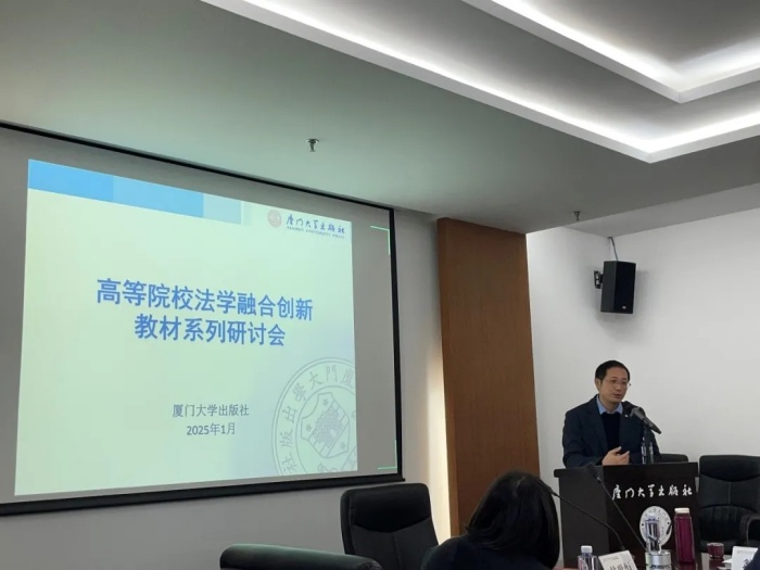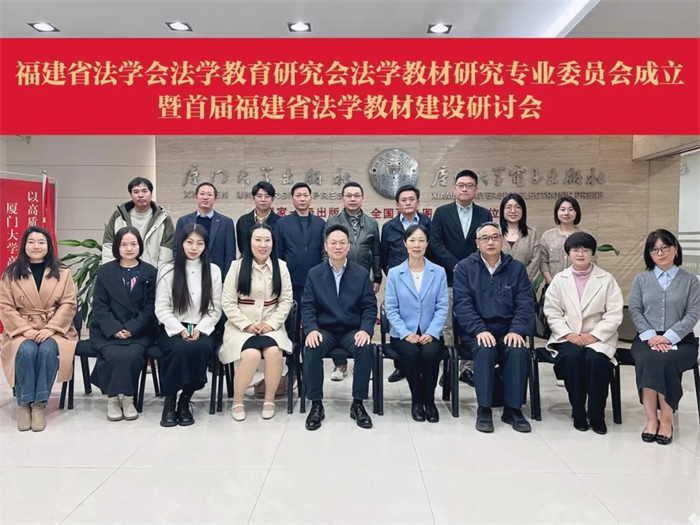 2025年1月3日,福建省法学会法学教育研究会法学教材研究专业委员会成立暨首届福建省法学教材建设研讨会在厦门大学出版社召开。本次会议由厦门大学出版社承办,厦门大学、福州大学、福建师范大学、华侨大学、福建理工大学、闽江学院、阳光学院、福建农林大学、福建师大协和学院、厦门大学嘉庚学院、集美大学诚毅学院、福州工商学院等18所福建省高校法学院系代表以线下和线上结合的方式参会,厦门大学出版社社长郑文礼,总编辑施高翔,法律编辑、营销人员出席会议。会议由福建省法学会法学教育研究会法学教材研究专业委员会秘书长、厦门大学出版社法律编辑室主任甘世恒主持。