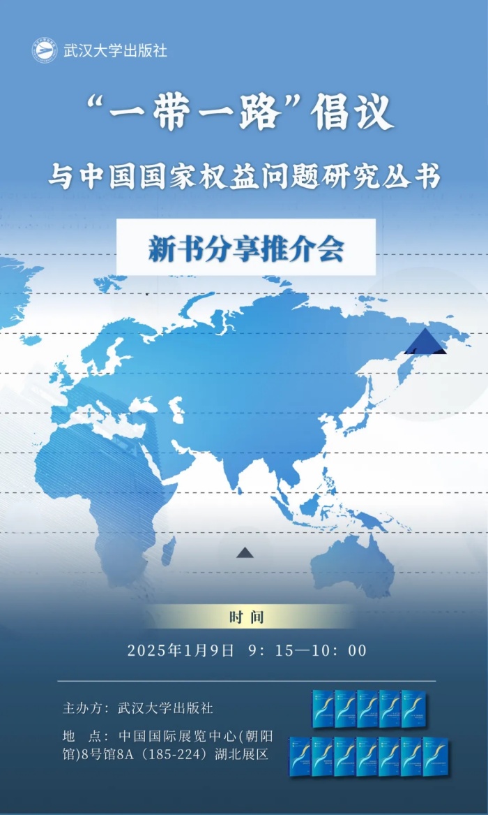 武汉大学出版社将于2025年1月9日9:15在2025北京图书订货会上隆重举办“‘一带一路’倡议与中国国家权益问题研究丛书”分享推介会。