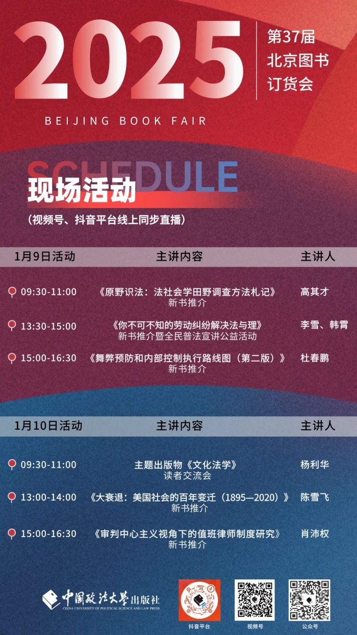 中国政法大学出版社2025年北京图书订货会活动预告