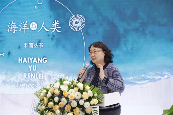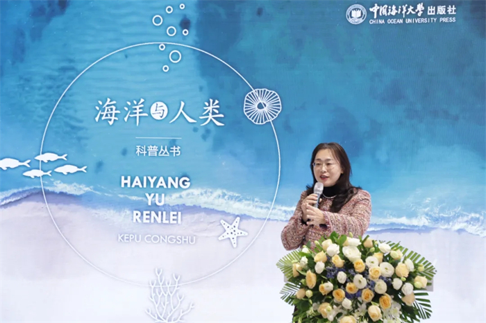 接着,中国海洋大学出版社社长刘文菁致辞。她谈到,出版社始终坚持传播科学知识和先进文化,坚守学术出版,深耕海洋科普,聚焦海洋、聚焦科普、聚焦创新,获得了中华优秀出版物奖、全国优秀科普作品奖等多项奖励。刘文菁指出,此次策划出版的 “海洋与人类” 科普丛书,由院士担纲,带领一线科学家编创而成,有实力,有内容,也有“颜值”,旨在引导广大读者深入体悟海洋与人类之间千丝万缕的紧密联系,真切感受人类探索海洋征程中所取得的丰硕成果,进而畅想海洋与人类和谐发展的更加美好的明天。她指出,2024年是中国海洋大学建校百年,习近平总书记在给学校师生的重要回信中强调,“努力培养更多胸怀蓝色梦想、堪当时代重任的优秀海洋人才”,希望出版社以这套丛书为新起点,在建设教育强国、海洋强国的新征程中,交出优秀答卷。
