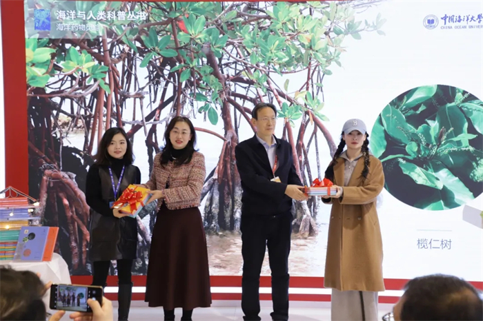 随后,山东省新闻出版局、山东省版权局副局长刘金祥,中国海洋大学出版社社长刘文菁向北京人天、青少年代表赠送了 “海洋与人类” 科普丛书。