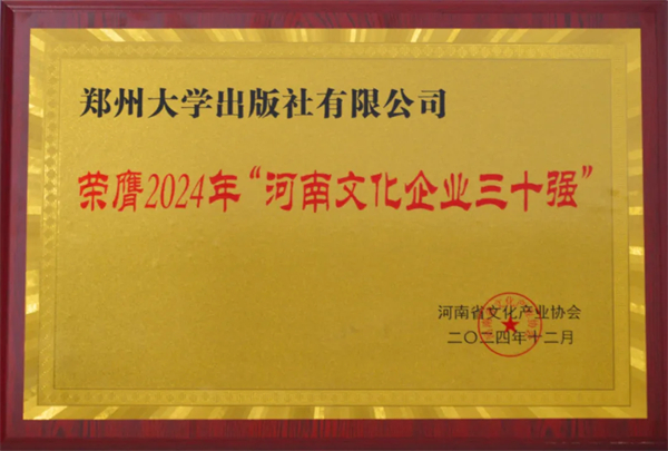 2024年“河南文化企业30强”推荐认定活动由中共河南省委宣传部、河南省文化和旅游厅指导,河南省文化产业协会主办,旨在落实文旅文创融合战略,激发文化经营主体活力,推动文化产业高质量发展,充分展示宣传河南省文化改革发展成效,发现和培育一批具有较强竞争力和影响力的骨干文化企业。近年来,郑州大学出版社深入学习贯彻习近平文化思想和习近平总书记关于宣传出版工作的重要论述,坚定担当一流大学出版社职责使命,坚持社会效益与经济效益相统一,核心竞争力不断提升,出版实力逐步增强。此次蝉联“河南文化企业30强”,不仅是对郑州大学出版社过往成绩的高度肯定,更为出版社未来前行注入强大动力。今后,郑州大学出版社将充分发挥河南省骨干文化企业的模范带头作用,不忘初心、砥砺奋进,持续挖掘优质内容资源,创新出版形式,借助新技术融合发展,为河南文化产业蓬勃壮大、为中华文化繁荣兴盛贡献更多郑大出版力量。