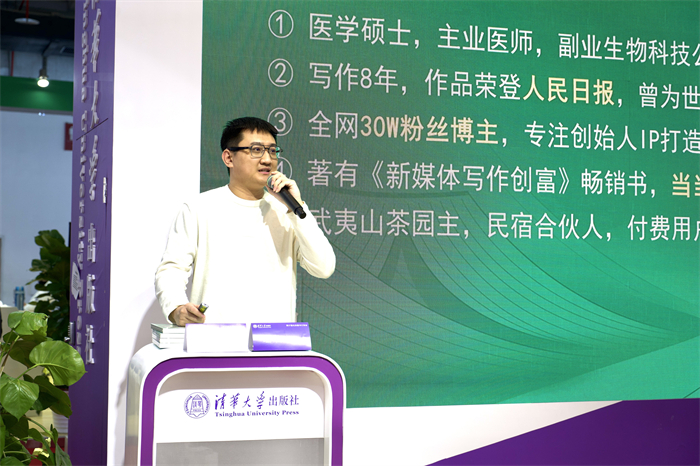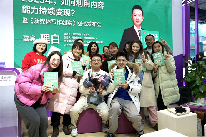 1月9日,2025年北京图书订货会现场,《新媒体写作创富》图书发布会成功举行,作者理白在分享会中进行了一场,关于“2025年,如何利用内容能力持续变现”为主题的新媒体写作与变现的讲座,吸引了众多内容创作者和行业专家的参与。《新媒体写作创富》一书由公众号「理白先生」的创办人理白老师撰写,清华大学出版社出版,是一本以赢利为核心目标,从快速入门到多渠道打造个人IP的“全流程”指导书。