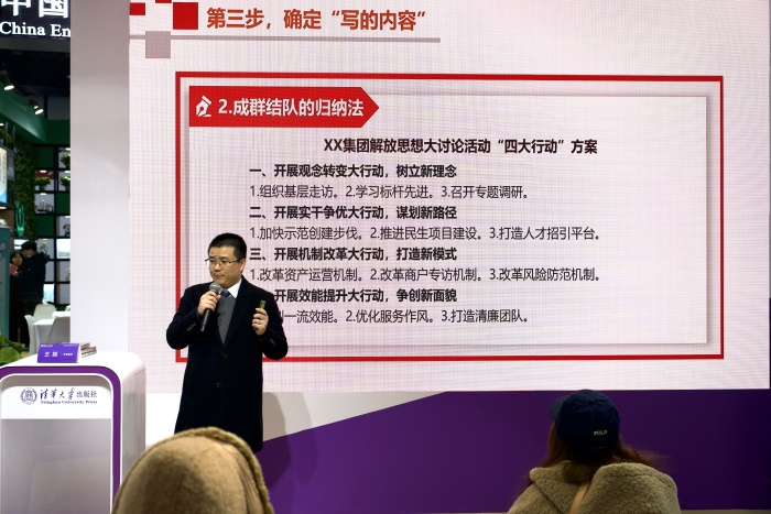 1月9日,2025年北京图书订货会现场,《手把手教你公文写作》作者讲坛成功举行,作者王振老师在讲坛中进行了“职场人如何写材料”的主题讲座。《手把手教你公文写作》一书由从事综合文字材料撰写工作十多年的王振老师撰写,由清华大学出版社出版,本书聚焦公文写作的实战能力培养,帮助读者提高对公文写作的理解认识水平和实践运用能力。