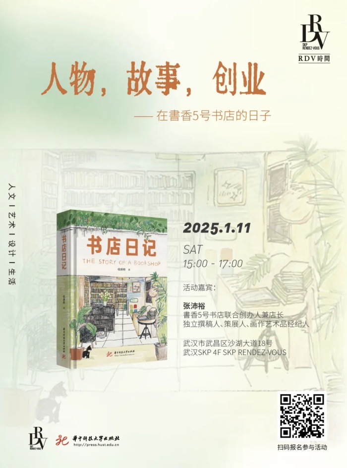 2025年1月11日(周六)15:00-17:00,書香5号书店联合创办人兼店长张沛裕将做客武汉SKP 4F SKP RENDEZ-VOUS,带领大家走进一个充满书香与温情的世界。