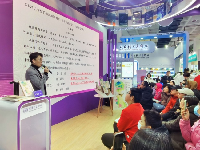 2025年1月11日上午,北京图书订货会现场,“初中语文寒假规划,手把手教你怎么学”主题讲座暨清华大学出版社畅销图书《中考语文考点精讲:语言基础、古诗词、文言文》签售会成功举办。