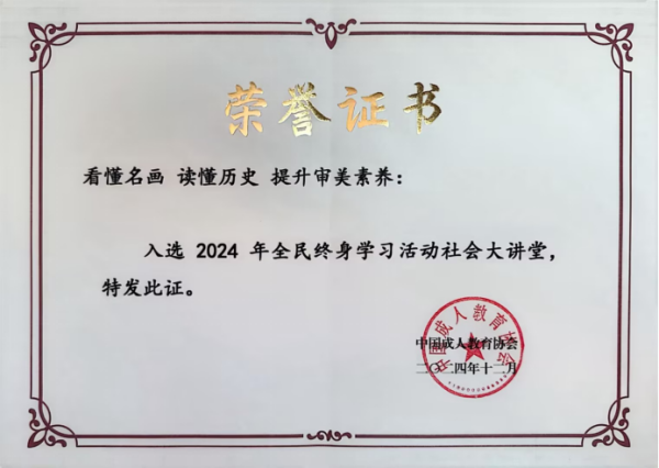 近日,中国成人教育协会公布2024年全民终身学习活动社会大讲堂名单的通知,外研社组织申报的“看懂名画 读懂历史 提升审美素养”专题讲座(阅读分社推荐)入选2024年全民终身学习活动社会大讲堂。本次讲座旨在借助中国传统文化的千年美学,展现中华民族的文化自信,通过专业的艺术解析,不仅激发公众对艺术的兴趣,还加深了对历史的了解,从而提升公众的审美素养和文化自信。
