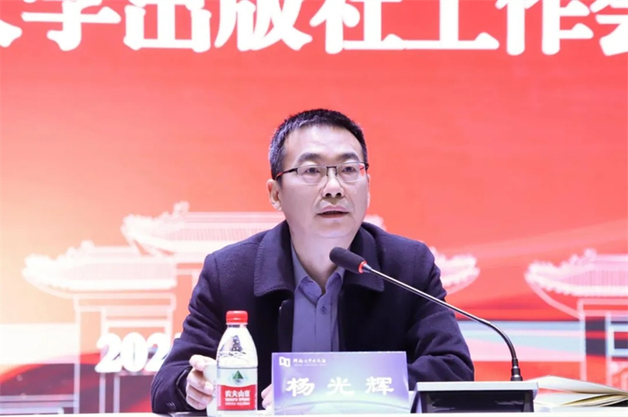 为锚定奋斗目标,鼓舞全员斗志,共谋出版社高质量发展新篇章,2月20日上午,河南大学出版社召开2025年度工作会议。社长谢清溪代表领导班子作工作报告,全面总结出版社2024年工作成果,并对2025年工作进行安排部署。全体干部职工参加会议,会议由党委书记杨光辉主持。