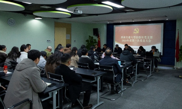 按照西南交通大学党委统一部署和有关要求,2025年2月19日下午,西南交通大学出版社党支部组织召开2025年度第一次党员大会,开展组织生活会前集中学习。出版社党支部全体党员、预备党员、入党积极分子参会。