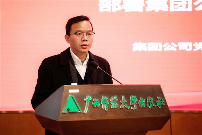 广西师范大学出版社集团公司全体经营班子成员、中层副职以上干部参加了会议。