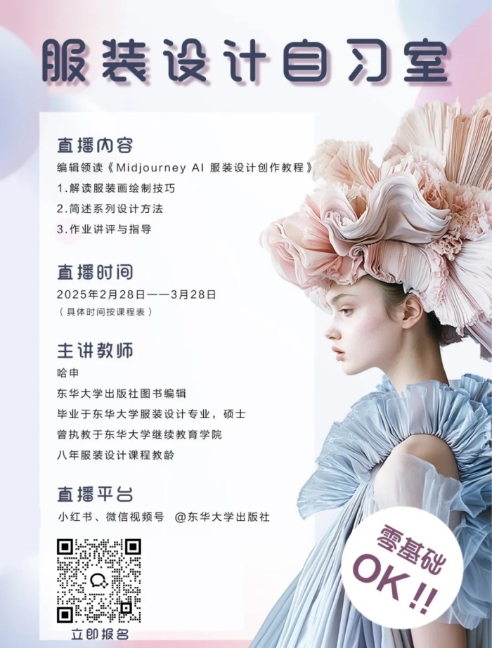感兴趣的朋友请扫下方二维码添加东华大学出版社小编企业微信,备注“服装设计自习室”,加入专属社群后即为报名成功。