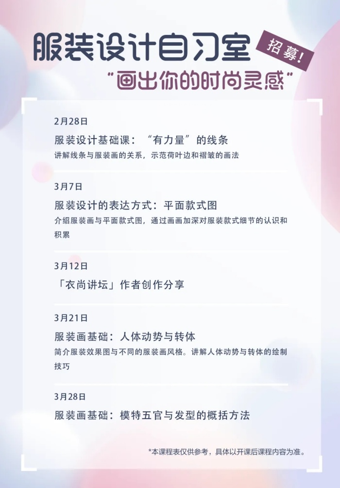 (共5场直播带练详见下文课程海报,3月12日专场直播为「衣尚讲坛」作者创作分享,敬请期待。)