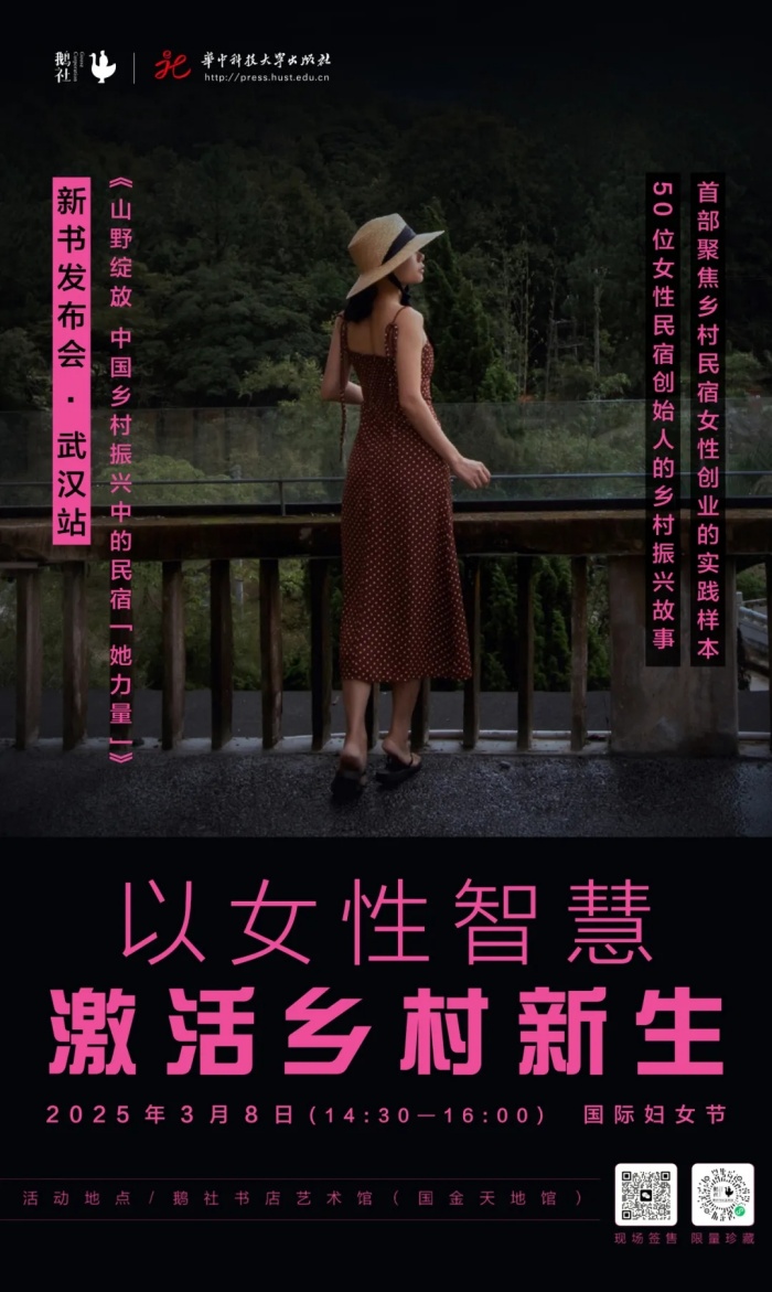 3月8日(本周六)下午14:30,美宿志创始人张迪将带着他的作品《山野绽放——中国乡村振兴中的民宿“她力量”》做客鹅社书店艺术馆(国金天地馆),与广大读者分享在中国乡村振兴的浪潮中,女性力量是如何以独特的方式激活乡村经济与文化。