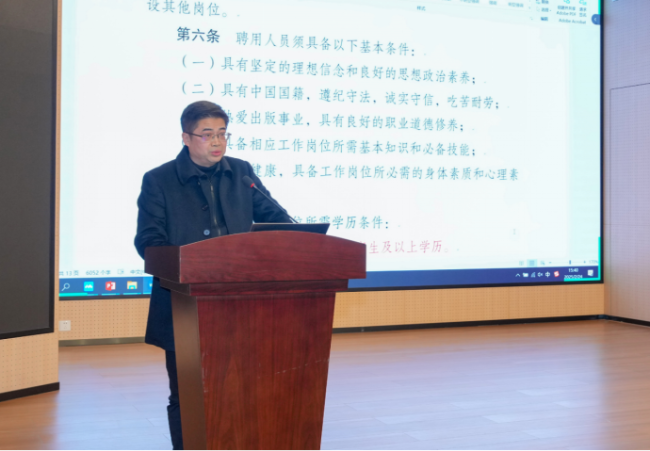 最后,党委书记、董事长张发钧对《西南大学出版集团聘用制人员管理办法(征求意见稿)》《西南大学出版集团薪酬福利实施办法(征求意见稿)》《西南大学出版社绩效A方案(征求意见稿)》等方案做了详细解读并征求全体职工意见。张发钧强调此次方案修订是集团推动全面深化改革的长远布局系列举措之一,推行聘用制动态管理与薪酬差异化分配,旨在打破“大锅饭”思维,通过“能进能出、能上能下”的用人机制和“按劳分配、优绩优酬”的分配导向,优化企业管理体制,激发全员工作潜能,推动集团事业高质量发展。