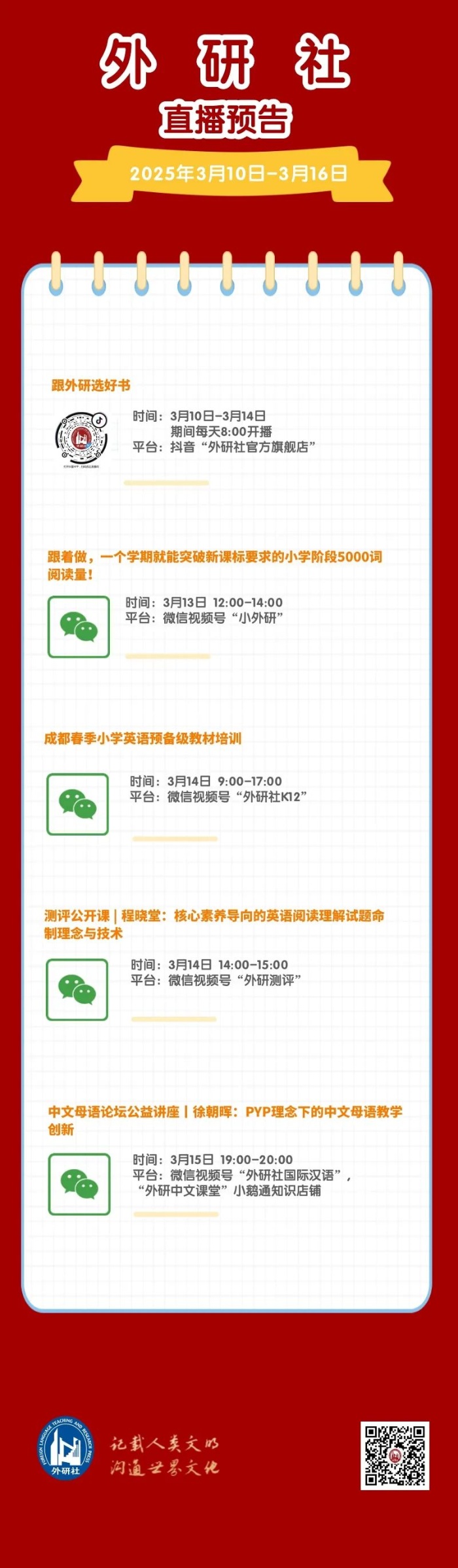 外研社一周直播预告(2025年3月10日-3月16日) - 活动预告 - 中国高校教材图书网