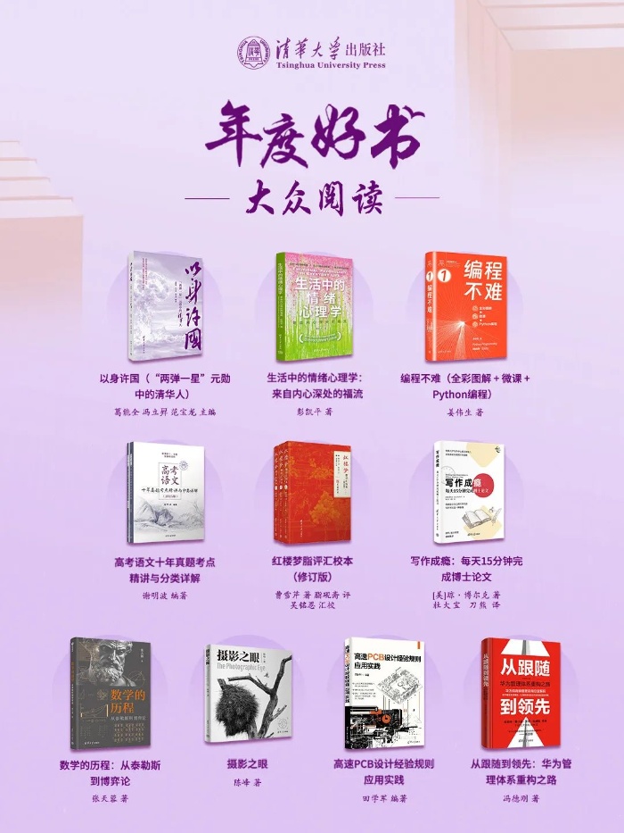 清华大学出版社2024年年度好书评选结果正式揭晓。本次评选秉持“导向正确、质量为先、双效统一”的原则,经提名、初评、终评三个阶段,并经社内公示,共有教材、学术著作、大众阅读等三类31种图书荣获清华大学出版社2024年年度好书称号。