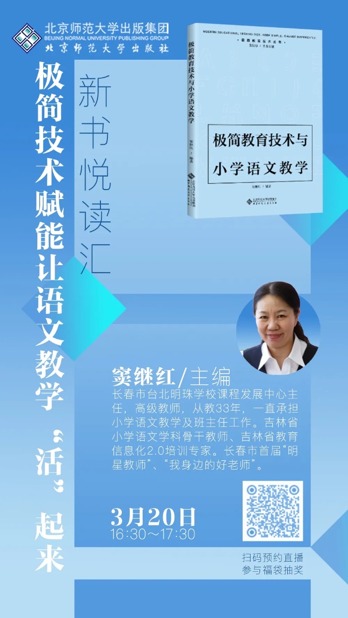 3月20日,我们将邀请长春市台北明珠学校课程发展中心主任、高级教师窦继红,与我们一起讨论如何利用极简技术赋能,让语文教学“活”起来。