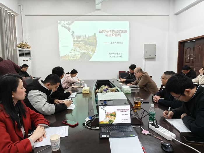 当新闻写作沦为流水线上的标准化产品,作者不就成了流水线上的装配工吗?3月11日下午,湘潭大学出版社副社长蒋海文在出版社411会议室的培训现场犀利开场。用解剖刀般的思维拆解新闻写作顽疾,以鲜活的案例示范破局之道,为全体员工带来了主题为“新闻写作的现实困境与进阶路线”的精彩讲座。