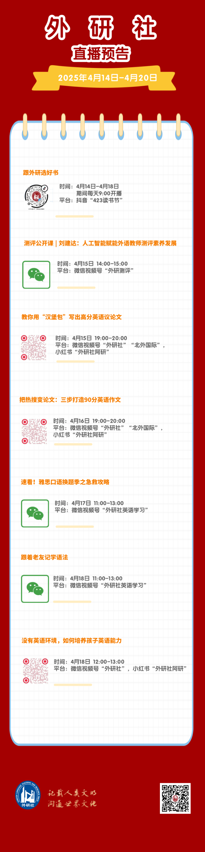 外研社一周直播预告(2025年4月14日-4月18日)