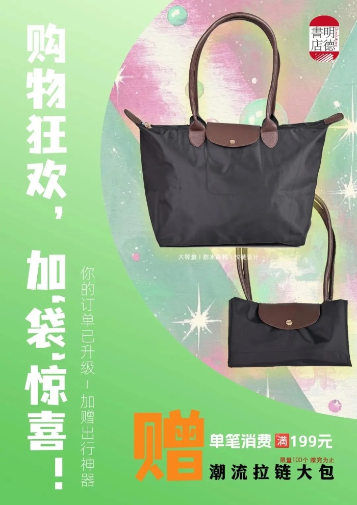 满额加赠,时尚手提包带回家:当您在店内消费满199元时,还能额外获得时尚高档手提包一个。这款手提包不仅外观时尚,而且实用性强,无论是逛街还是出行,都能成为您的时尚点缀。提着它,装满您的阅读收获,展现您的优雅品味。