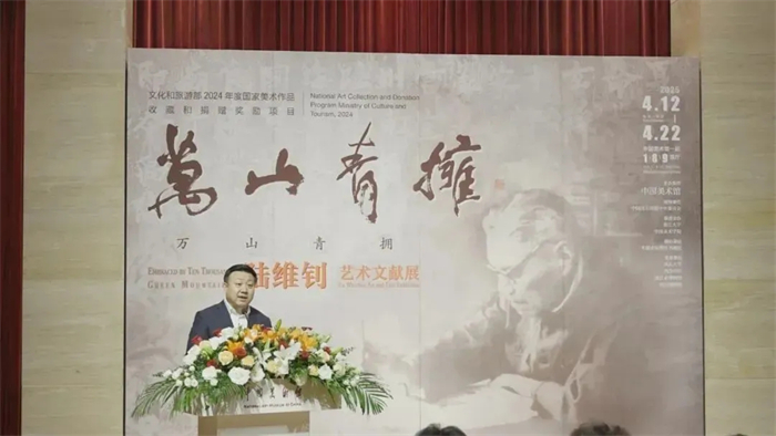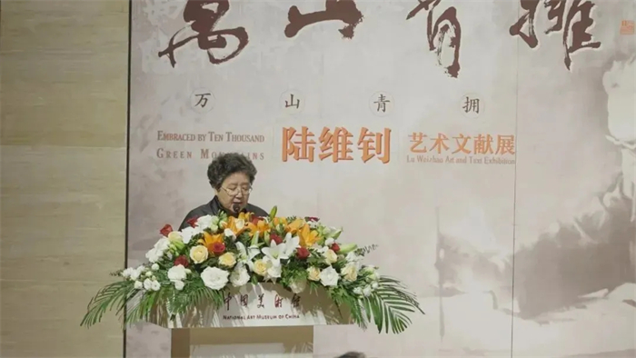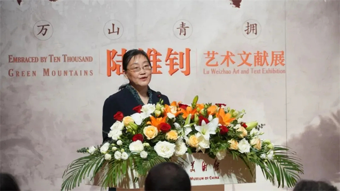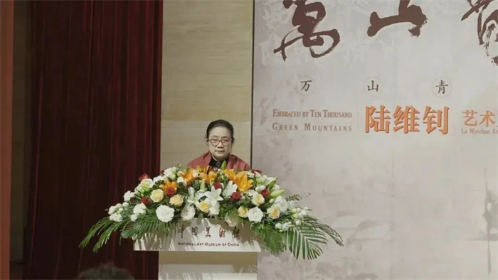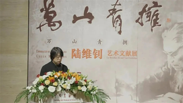 中国美术馆党委书记安远远代读民盟中央副主席、中国美术馆馆长、中国美术家协会副主席吴为山致辞