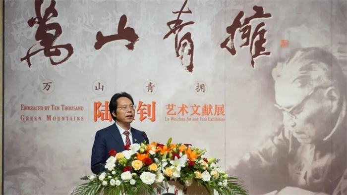 安远远代表吴为山在致辞中首先向陆维钊先生家属的高风亮节表示由衷感谢,对新入藏的陆先生脍炙人口的一系列精品力作给予高度评价。陆维钊是中国现代高等书法教育的重要奠基者,其书法融文化厚度与形式张力于一体,是真力弥漫之书。他以金石学养筑牢书法的文化根基,在传统资源的深度开掘中实现创造性转化、创新性发展,为碑帖融合和书法现代转型提供了具有本体论意义的范式。本次展览以“万山青拥”为题,既源自陆维钊自作诗词中的核心意象,也寓意其诗、书、画三位一体的艺术境界,是对其艺术精神与文化追求的集中呈现。