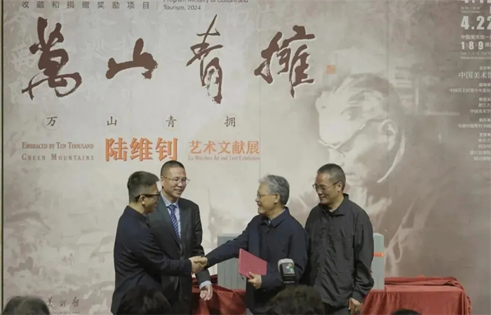 春风浩荡,翰墨怡人。4月18日上午,“万山青拥——陆维钊艺术文献展”暨《陆维钊全集》首发式在中国美术馆举办。本次展览是文化和旅游部2024年度国家美术作品收藏和捐赠奖励项目,由中国美术馆主办,中国民主同盟中央委员会指导,浙江大学与中国美术学院联合主办,平湖市陆维钊画院协办,南京大学、西泠印社、浙江省博物馆、绍兴博物馆等单位支持。展览展出陆维钊书法、绘画代表作及相关文献130余件,全面呈现陆维钊先生的艺术风貌与文化贡献。