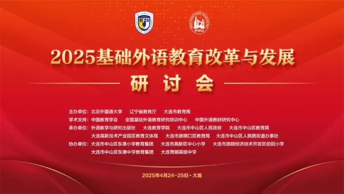 2025年4月24日,由北京外国语大学、辽宁省教育厅、大连市教育局主办,中国教育学会、全国基础外语教育研究培训中心、中国外语教材研究中心提供学术支持,外语教学与研究出版社(以下简称“外研社”)、大连教育学院、大连市中山区人民政府、大连市中山区教育局、大连高新技术产业园区教育文体局、大连市旅顺口区教育局、大连市中山区人民路街道办事处承办,大连市中山区东港小学教育集团、大连市高新区中心小学、大连市旅顺经济技术开发区伯阳小学、大连市中山区东港中学教育集团、大连育明高级中学协办的“2025基础外语教育改革与发展研讨会”开幕。北京外国语大学党委书记、中国教育学会副会长王定华,中国教育学会常务副会长李天顺,教育部基础教育司普通高中教育处一级调研员曾阳,北京外国语大学党委常委、副校长丁浩,辽宁省教育厅二级巡视员陈宝祥,大连市政府副秘书长张晓峰,大连市中山区区委副书记、政府党组书记、区长王厚海,大连教育学院党委副书记、院长赵刚,上海外国语大学教授、博士生导师梅德明,北京师范大学教授、博士生导师程晓堂,大连市中山区政府副区长、 党组成员陈兆峰,大连教育学院党委副书记高凯,大连教育学院党委委员、副院长赵妤婕,大连教育学院党委委员、纪委书记李斌,大连市教育局高中处处长张淑媛,大连市中山区区委教育工委副书记、教育局党组书记、局长李玉军,大连市旅顺口区教育局党组书记、局长马殿文,外研集团(外研社)党委书记、董事长,外研社社长王芳,中国教育报编审、主编,中国教育学会国际教育分会副理事长刘华蓉,中国教育学会国际教育分会秘书长张东升,外研社副社长王勇,外研社党委副书记陈媛媛等出席会议。1500余位来自全国各地的教育行政主管部门负责人、中小学英语教研员、校长、教学主管和骨干教师齐聚大连,聚焦新时代育人使命,围绕“教育强国背景下的基础外语教育课程教学改革”这一主题,共同探索基础外语教育发展新路径,与会代表充分沟通、深入交流,为推动教育高质量发展积极建言献策。