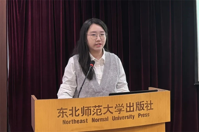 总编辑张恰作开场发言。他从编辑职业道德、专业素养,编辑队伍建设,以及加强编辑专业阅读等方面阐释了举办读书分享会的目的与意义,强调了专业阅读对编辑成长和职业发展的关键作用。张恰希望通过举办活动营造“爱读书、多读书、读好书”的阅读风尚,将东北师范大学出版社打造成书香出版社,激发编辑的阅读热情,进而提升出版社编辑队伍的整体素质。