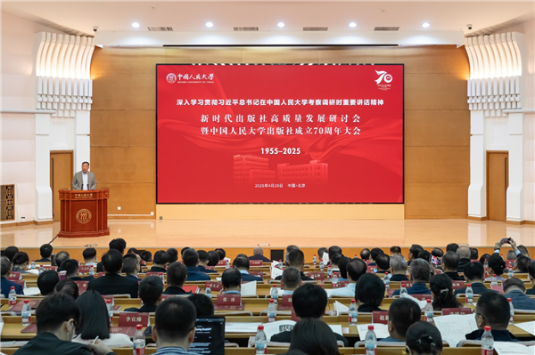 4月29日,在习近平总书记考察调研中国人民大学三周年之际,为贯彻落实习近平总书记的政治嘱托,落地生根、开花结果,“新时代出版社高质量发展研讨会暨中国人民大学出版社成立70周年大会”上,“党的创新理论体系化学理化研究文库”“中国自主知识体系研究文库”正式发布。