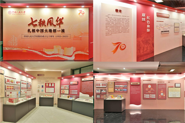 当天下午,“七秩风华:扎根中国大地创一流——中国人民大学出版社成立七十周年(1955—2025)”主题展览在中国人民大学博物馆开幕。