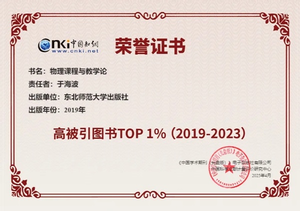 近日,中国知网·中国科学文献计量评价研究中心(CNKI)发布了“高被引图书TOP1%(2019—2023)”榜单,东北师范大学社出版的《物理课程与教学论》《备课专业化》入选。