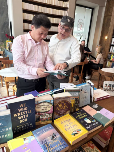 5月10日,彭冬林一行在希腊驻华使馆前新闻参赞海恩福的陪同下调研雅典当地书店,考察当地读者喜爱的图书类型,并与书店方就文创产品销售等事项进行了深入沟通与洽谈。我社赴希腊书展代表团成员中国语言文化出版分社术语工程部副主任刘旭璐、国际合作部版权经理孟佳文一同参加了上述活动。